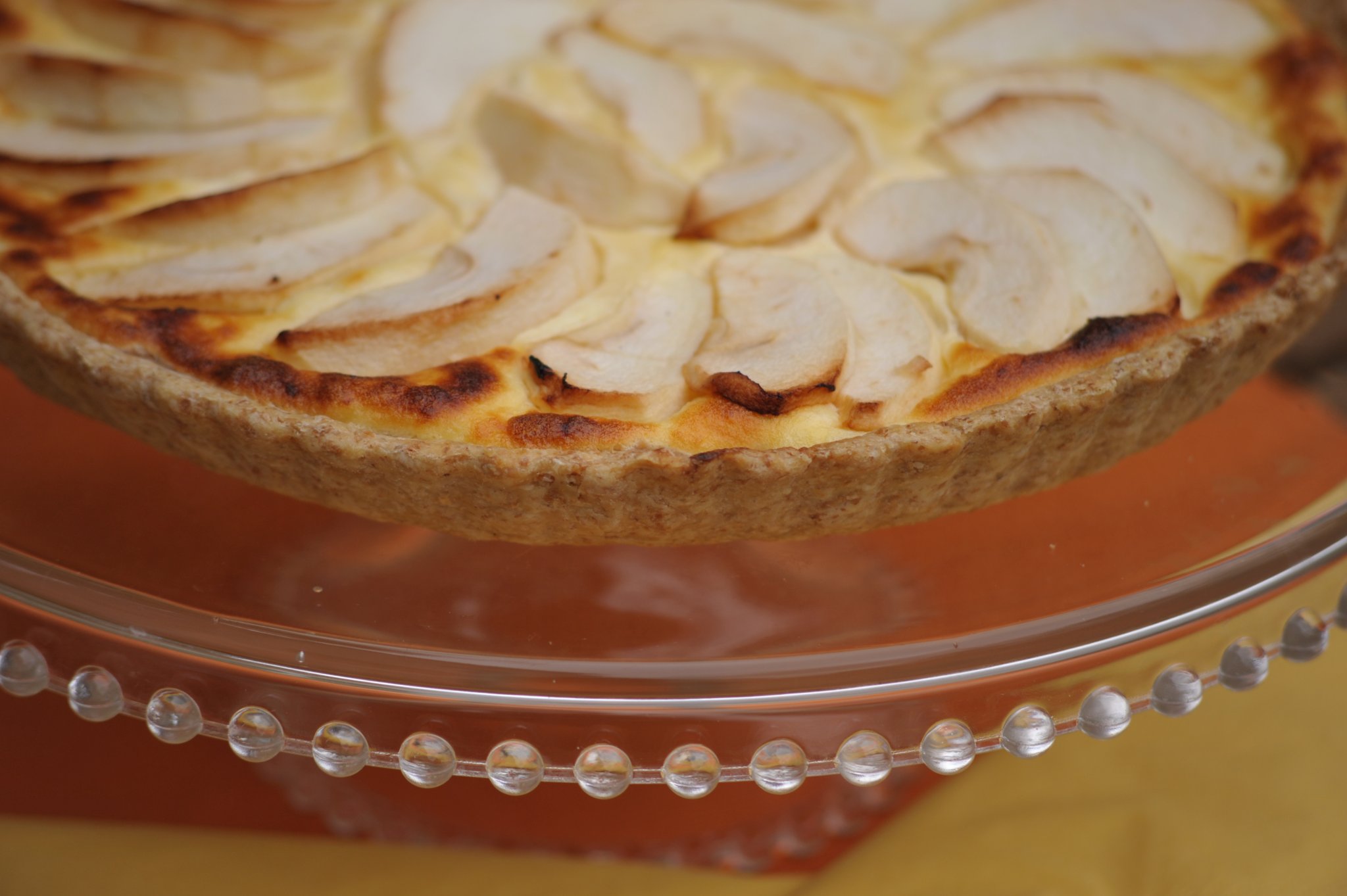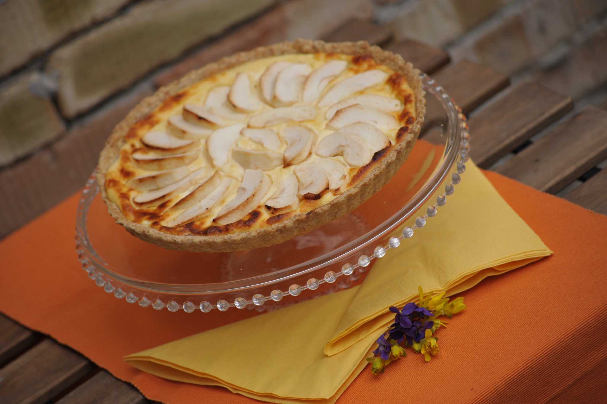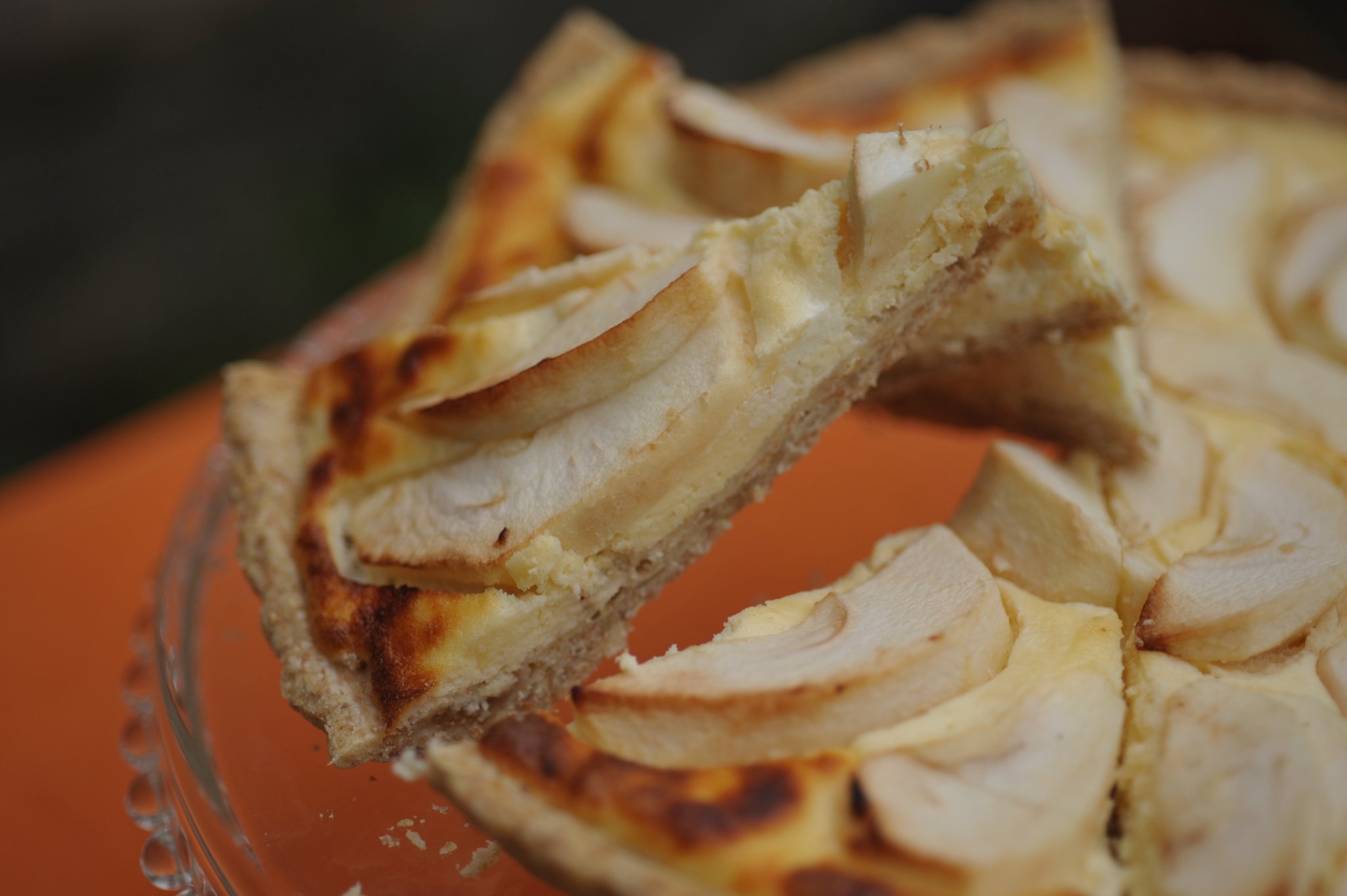 Én hiszek a vakon sütésben. Szóval, kivajazott piteformányira nyújtsd ki a tésztát, simítsd bele, picit szurkáld meg, fóliát rá, és rizset :). Mehet be a sütőbe légkeverésre, 170 fokra 10 percre, majd további tízre ugyanígy nehezék nélkül. Ha elősült a tésztád, kend meg almalekvárral, kanalazd rá túrós masszát, végül diadalittasan rakd ki szép almaszeletekkel, és told vissza a sütőbe.